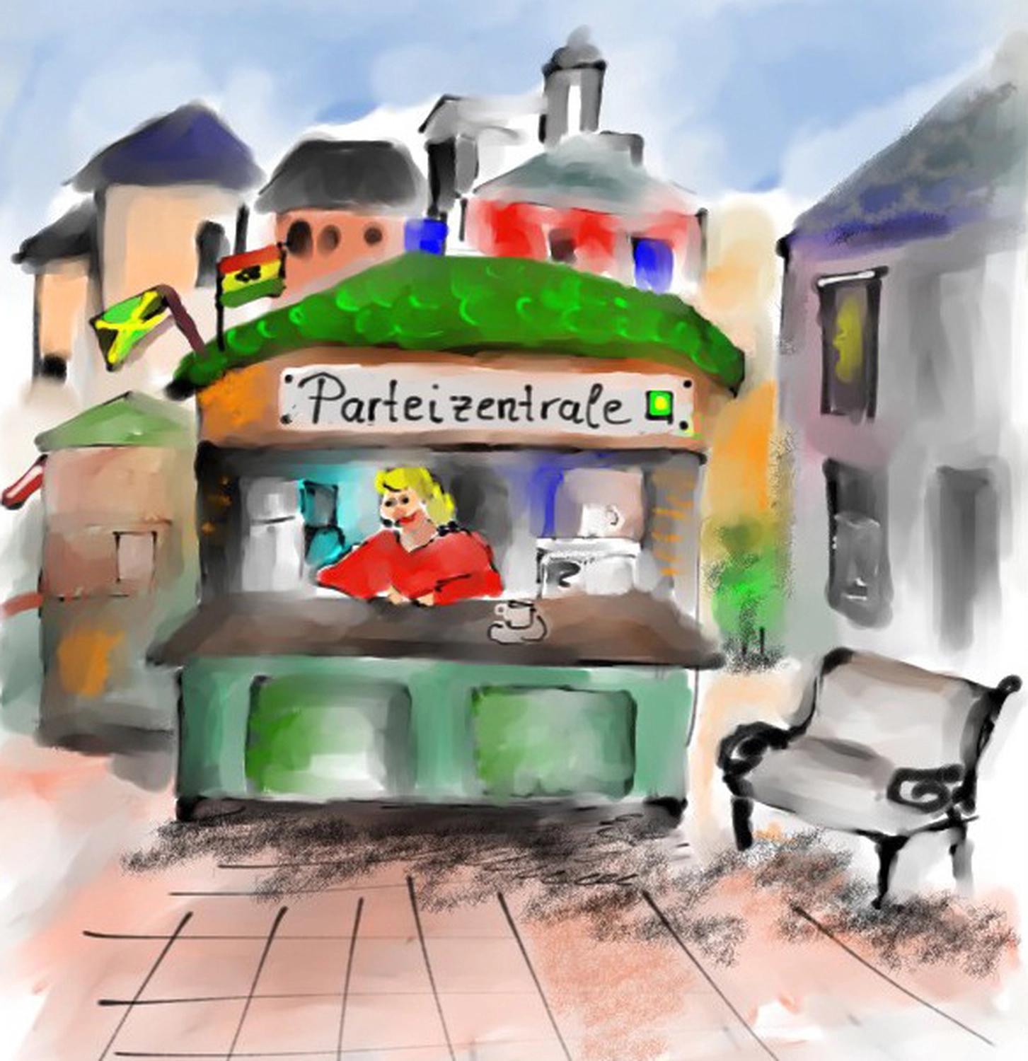 Der Marktplatz von Himmichheim ist Dreh- und Angelpunkt des örtlichen Geschehens in der Gemeinde. Mittendrin und immer gut informiert: Kioskbetreiberin Margot Thorstedt. Eigentlich dauert es noch bis zur nächsten Gemeinderatswahl, doch als ein SPD-Parteimitglied unerwartet zur CDU überläuft, werden Neuwahlen ausgerufen und es beginnt ein Wahlkampf, den Himmichheim noch nicht erlebt hat. Der ehemalige Fremdenlegionär Hans Oftersen gründet eine Partei, der Kiosk wird zur Parteizentrale, Rentner Arno Fleckmann ungewollt zur Symbolfigur einer begehrten Zielgruppe und das Werben der Parteien immer absurder. Gibt es am Ende in Himmichheim vielleicht sogar eine Jamaika-Koalition?